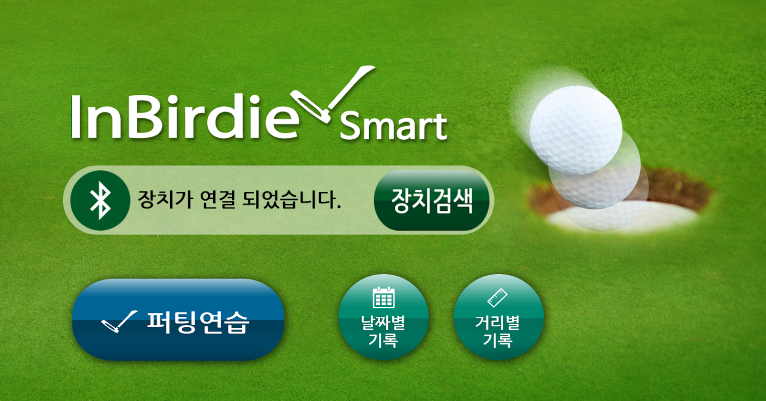 인버디 스마트는 스마트폰과 인버디 스마트 퍼팅연습기를 블루투스로 연결하여