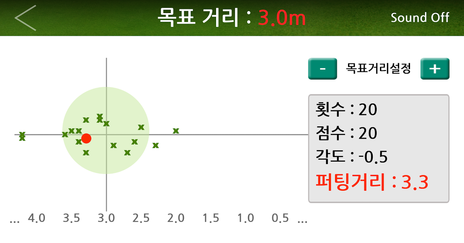 또한 연습한 퍼팅 데이터를 저장, 날짜별/거리별로 관리 할 수 있어 퍼팅 실력 향상에 많은 도움을 줄 수 있습니다.