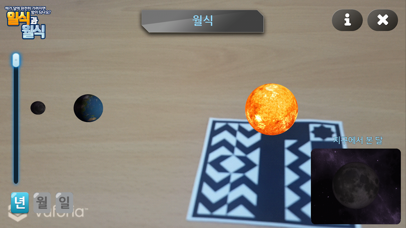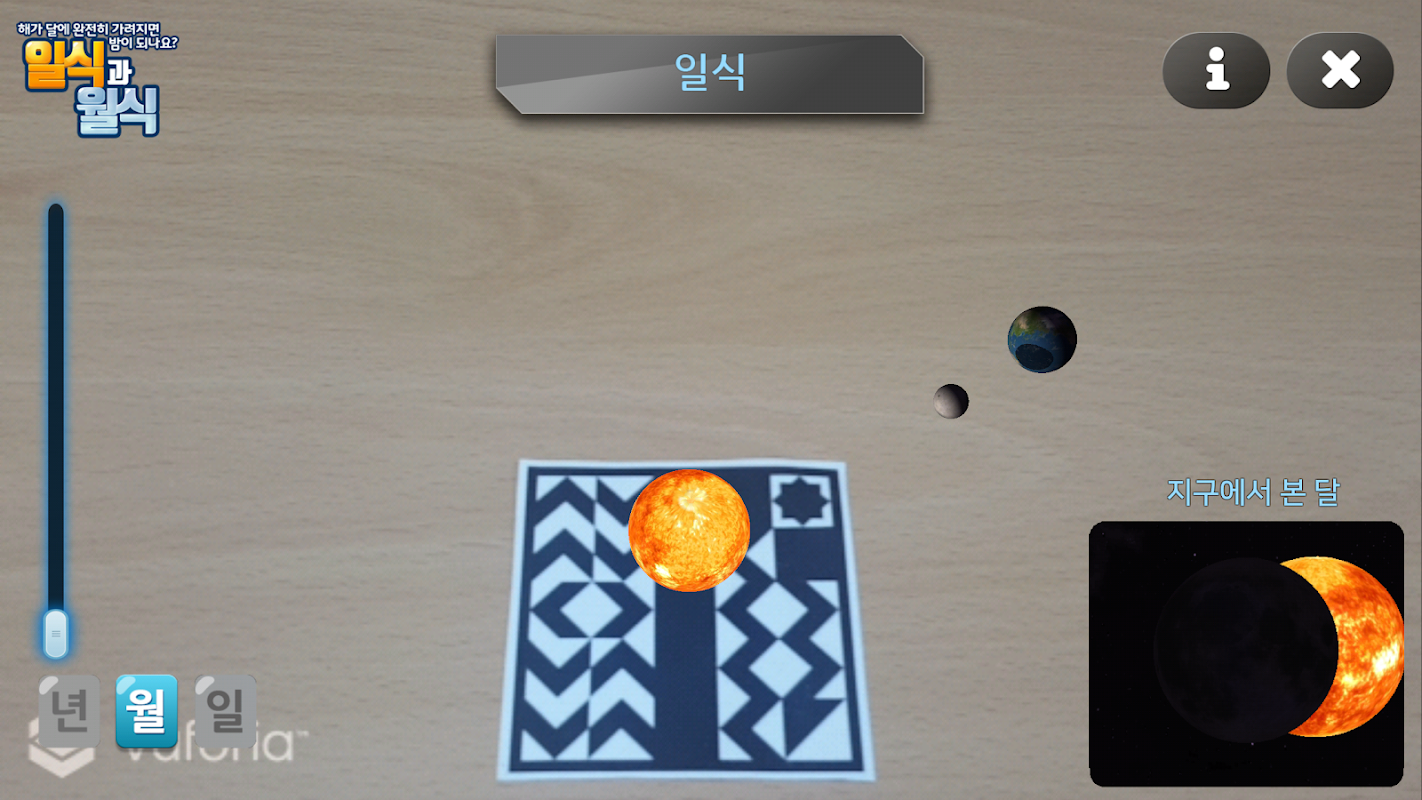 '일식과 월식'은 지구의 자전과 공전 때문에 생긴 일식과 월식을 손쉽게 관찰 할 수 있는 AR 콘텐츠 입니다.