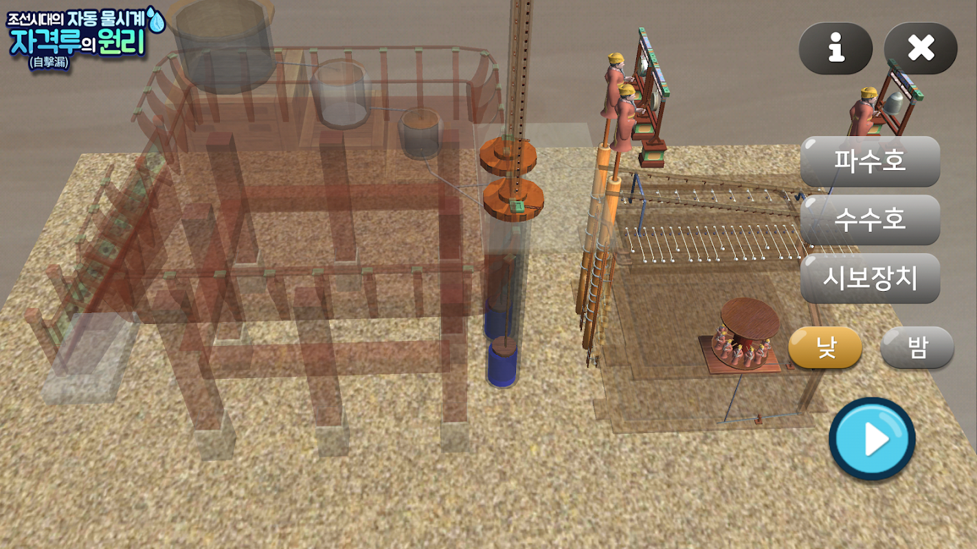 '자격루의 원리' 조선 시대 최고의 과학자로 기억되는 장영실이 만든 물시계, 자격루의 원리를 알아보는 관찰 AR 콘텐츠 입니다.