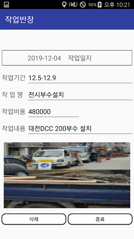 About 작업반장 - 작업내용/수익/근거사진 저장 , 통계보기