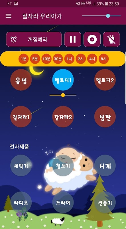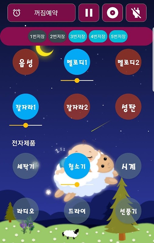포함된 소리는 각기 볼륨조절과 믹스 그리고 꺼짐예약, 프리셋 설정이 가능해요