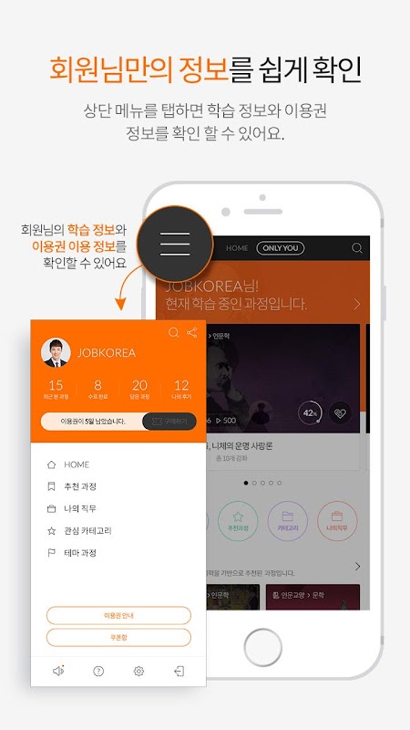 스마트폰 하나만으로 언제 어디서나 나만의 맞춤 학습이 가능한 온라인 강의 앱!