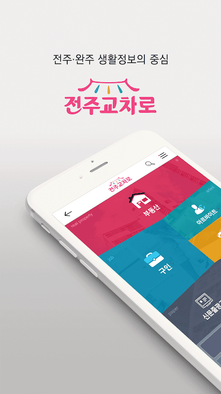 Jeonju, Wanju area Jeonju intersection mobile app providing information about real estate, apartment, job, and job life