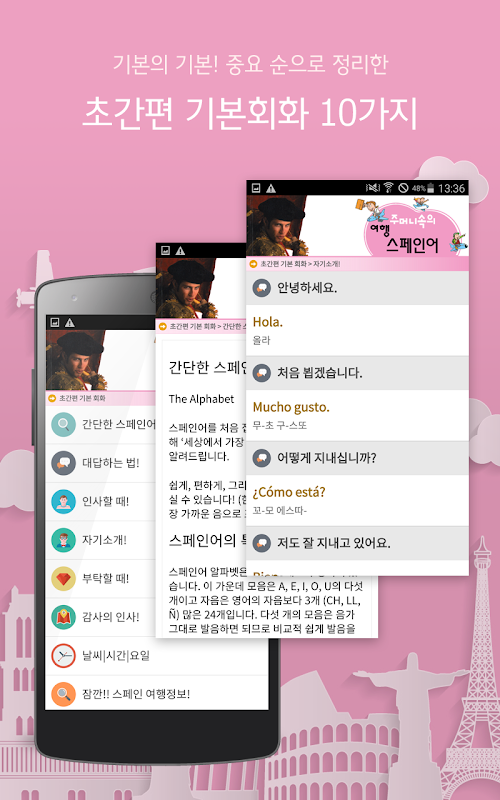 ▶해외 여행자를 위한! 도서 출판 신나라의 여행용 회화책을 어플로 탄생 ▶초간편 기본회화 6가지,각 상황에 따른 챕터내용수록 ▶스페인어음원지원