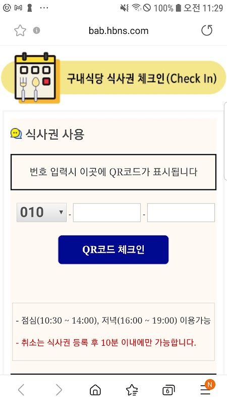 구내식당 식사권을 QR로 체크할 수 있는 사이트로 이동