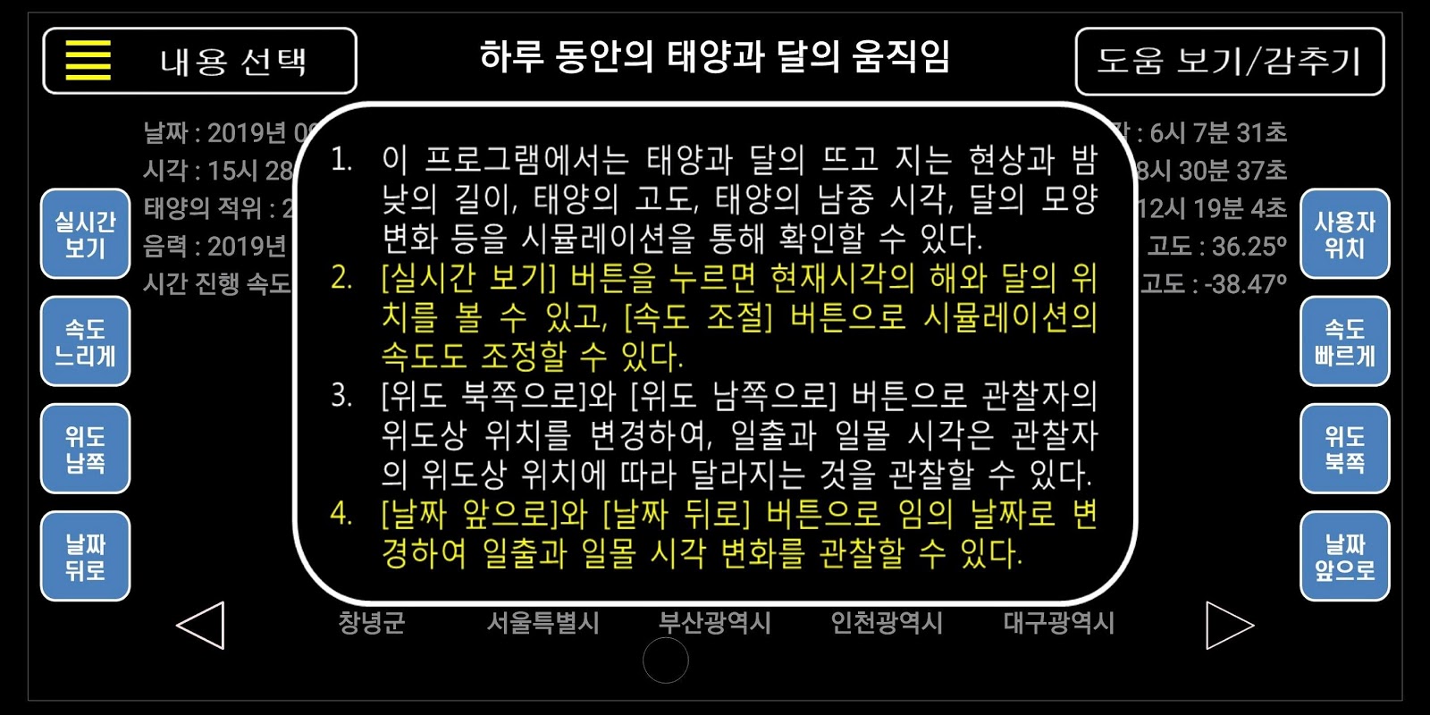 태양과 달의 방향각과 시뮬레이션 화면을 개선하였습니다.