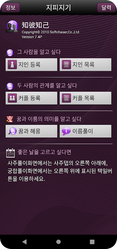 About 지피지기 (사주,운세,궁합,토정비결,이름,해몽)