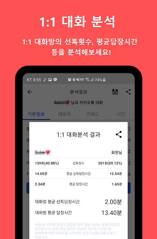 Among the conversations with acquaintances, the 'most popular keywords', 'users with the most conversations', 'period' and 'per hour' analysis functions are provided.