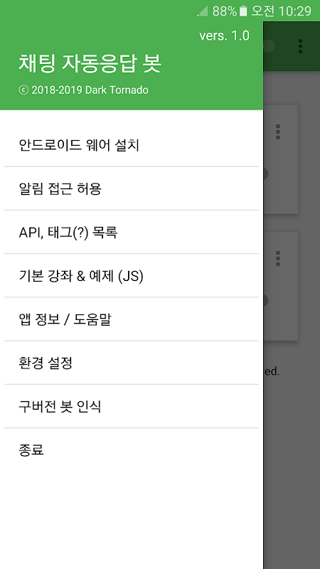 상단바에 있는 메신저 앱의 알림을 읽어오는 방식으로 채팅 수신을 인식하기 때문에, 메신저 앱의 알림이 켜져있고, 이 앱이 알림에 접근할 수 있어야 작동하며, 안드로이드 웨어(Wear OS)를 통해 답장하기 때문에, 안드로이드 웨어가 깔려있어야 정상적으로 작동합니다.