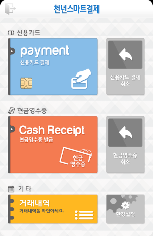 1.신용카드 결제/승인취소 2.현금영수증 발급/발급취소 3.결제시 전자서명 지원 4.결제후 직전취소 가능 5.신용카드 결제 내역 조회 6.영수증 출력(SPP-R215 모바일 프린터 지원)