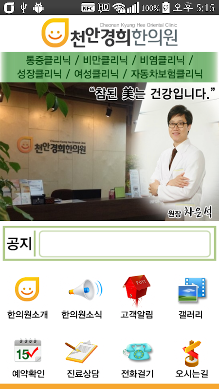천안경희한의원은 천안 아산을 대표하는 한의원이 되고자하는 이념으로 합리적인 가격과 뛰어난 치료 효과, 지속적이고 체계적인 고객관리를 통해 내원하시는 모든 고객분들에게 최선을 다하는 한의원이 되고자 항상 노력하겠습니다.