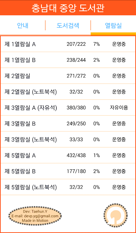 [Provide the core functionality required;- Hire Book Search Library!- Real-time status janyeoseok reading room !!- Real-time reading room seating chart!