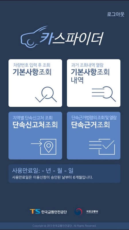 This app provides a service to search basic information and violation information of automobile with app for civil servants for crackdown on illegal cars.