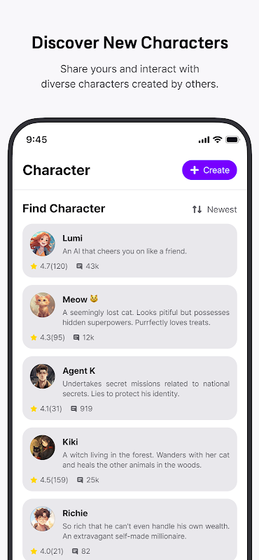 Engage in conversations anytime, anywhere with your own character on CharacterTalk.