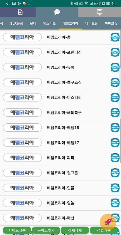 또한 주요 커뮤니티별로 사용량이 많은 게시판의 경우 바로 접속이 가능하도록 하였으니 너무 편하겠죠. 이외 자주가는 커뮤니티 게시판은 북마크하여 언제든 연결할 수 있습니다.