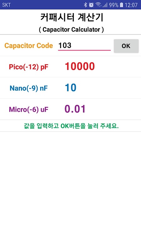 Capacitor (Capacitor) This is an application to calculate if you enter the number indicated.
