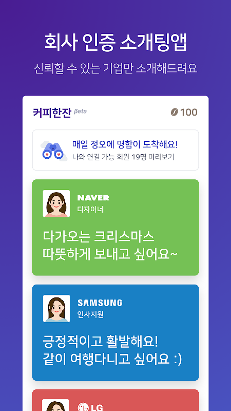 Blind blind date between office workers. No photo is required, but only office workers with a company email address can sign up. All large and small businesses are welcome.