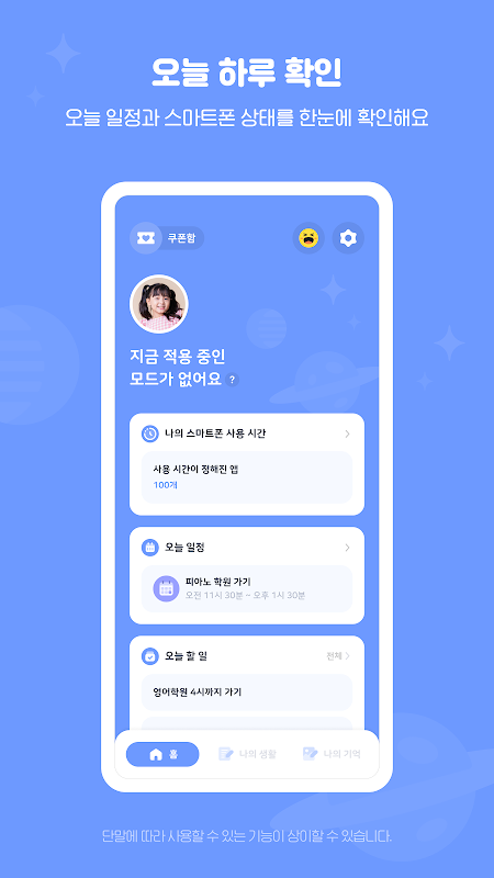 You can use smartphone management/daily functions in the Kiwi Play+ kids app.
