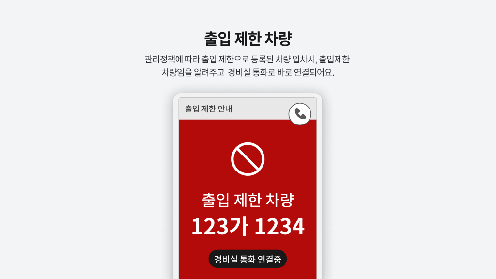 - When a vehicle registered as restricted access according to the management policy enters the vehicle, it is notified that it is a restricted vehicle and a call is made directly to the security office.