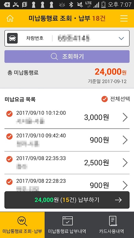 - 미납통행료 납부 내역 조회, 영수증 출력이 가능합니다.