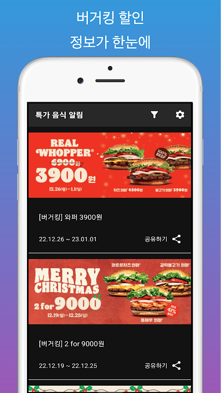 About 특가 햄버거, 피자 알림(버거킹, 롯데리아, 파파존스)