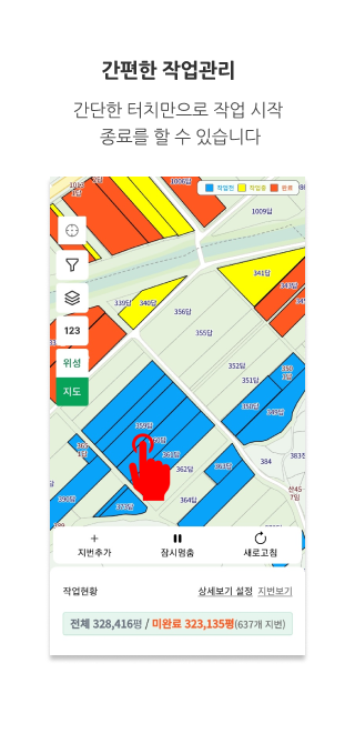 - If a nearby farmer or an applicant farmer directly requests the worker to register the lot number while working on the site, you can easily register the lot number with a simple touch on the map at the site.