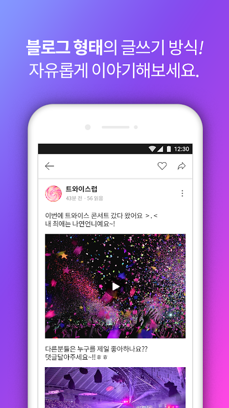 팬톡 for 트와이스에서 나와 같은 트와이스팬들과 함께 스타에 대해 소통하고