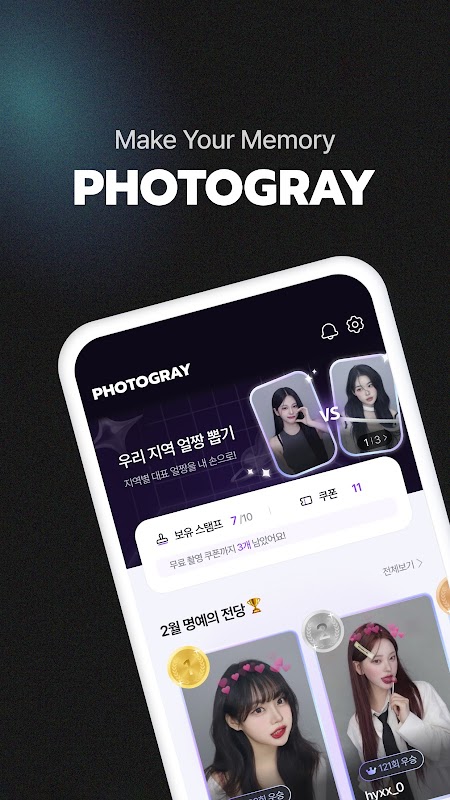 ① Camera: Access to take photos when participating in the Four Cut ranking game