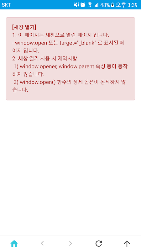 - 웹페이지 에러 처리(네트워크 연결, 404, 500 등) 단, Android 4.4 이상