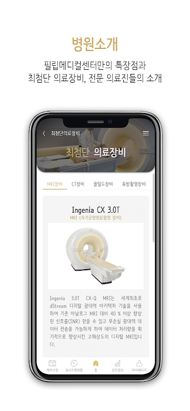 You can see the unique features of Philip Medical Center, cutting-edge medical equipment, and introductions of professional medical staff. Check out Philip Medical's state-of-the-art medical equipment, such as 3.0 Tesla's high-resolution MRI, early cancer diagnosis PET-CT, and 26 professional medical staff, and classy and cozy university hospital-level treatment services in advance.