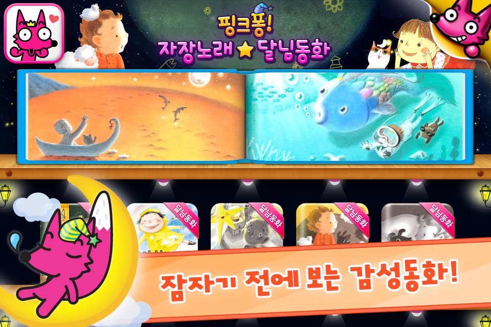 유년기에 본 아름다운 그림이나, 음악은 어린 아이들의 감성 발달에 큰 도움을 줍니다. [핑크퐁! 자장노래 ★ 달님동화]는 부드러운 손그림으로 꾸며진 아름다운 이야기와 잔잔한 자장가를 통해 아이들이 즐거운 기분으로 잠들 수 있도록 도와줍니다.