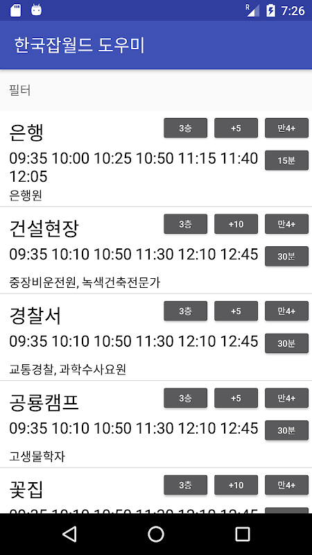 - 위치, 연량, 조이, 체험시간등에 따라 쉽게 스케줄 작성 가능