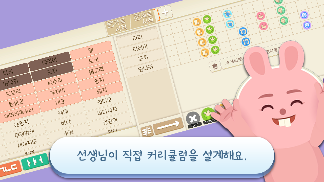 Meet systematic Hangeul education with a personalized curriculum designed by the teacher and a total of 36 Hangeul word play author-directed learning video lectures.