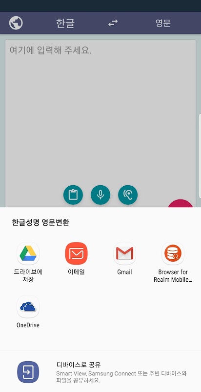 음성으로 말하거나 한글을 입력하면 영어로 번역하고 통역을 들을 수 있습니다. 영어로 말하거나 영어로 입력하면 번역문을 보고 들을 수 있습니다.