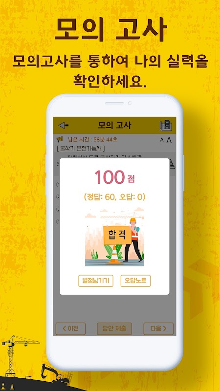 - Mock exam/wrong answer note function is the best shortcut for passing the forklift driving technician and excavator driving technician.