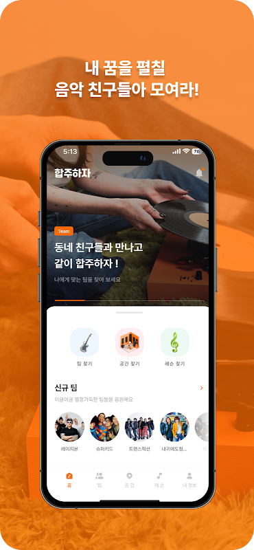 "레슨, 공간대여, 합주까지! 원하는 팀을 만들고, 함께 "합주하자"