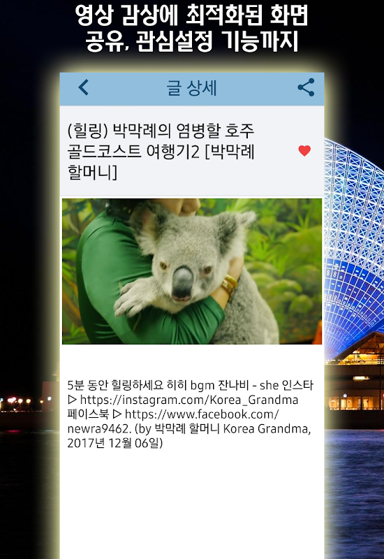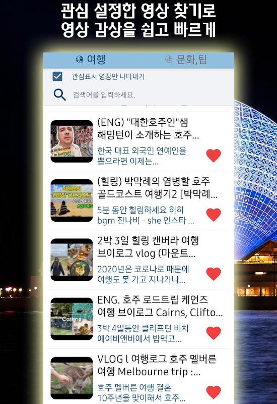 호주를 가고싶어하는 분들에겐 랜선여행~ 호주여행을 계획하는 분들에겐 더 없이 유익한 참고어플~! 800여개 호주 여행, 문화, 역사 영상 어플!
