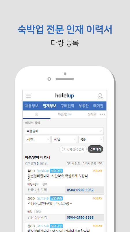 호텔업 - 숙박업 채용정보, 호텔, 모텔, 펜션 1.4.3