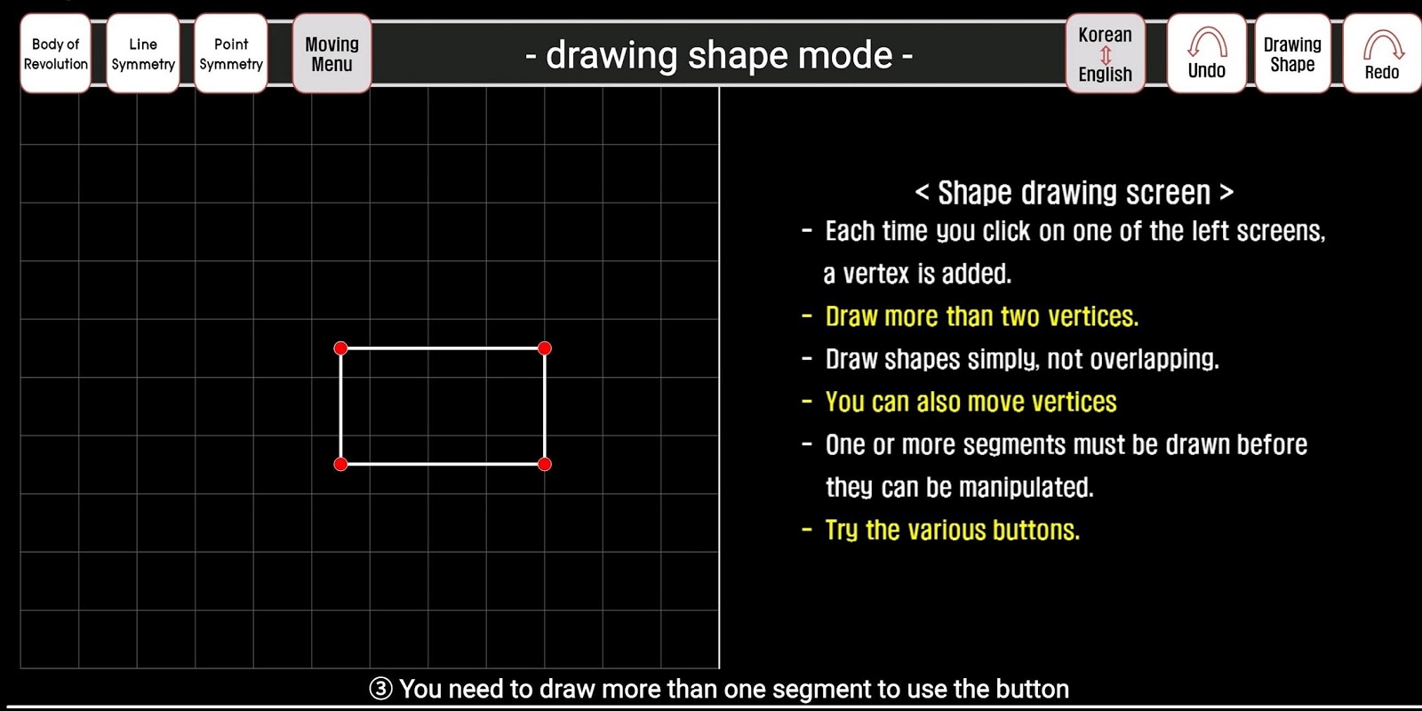 This is an application for teaching and learning mathematics that draws a planar shape using the line drawing function to create the next figure. (This is an application for teaching and learning mathematics that draws a planar shape using the line drawing function. )