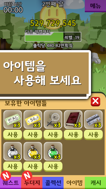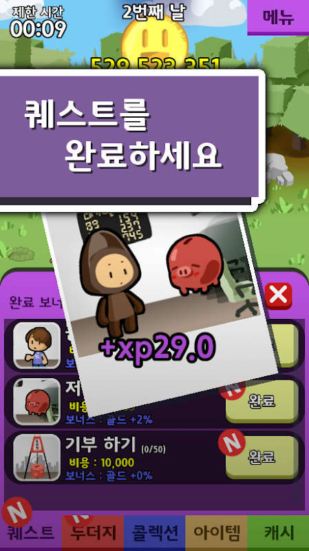 2. 획득한 골드를 통해 퀘스트를 완료 하거나, 두더지를 강화할 수 있게됩니다.