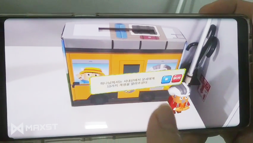 바이블 캠프 버스에 증강현실 앱을 켜고 카메라를 가져다 대면