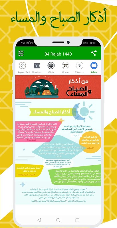 ✓ أذان أو أذان ، مع إمكانية اختيار أغنية أذان ووقت التنبيه قبل صلاة الجمعة في الإعدادات ،