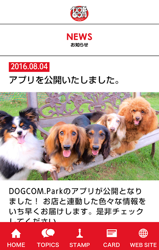 Registration of membership card is also available! You can also check further around DOGCOM.Park weather and more!