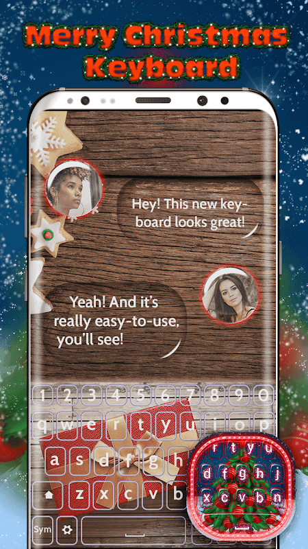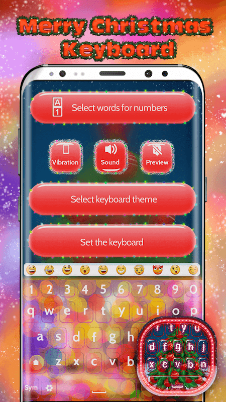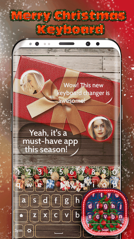 Celebrate wonders of Christmas season with our 🎁 “Christmas gift” 🎁 and make your keyboard more festive and colorful! It's time to leave your ordinary keypad behind and get this 😋 “emoji keyboard” 😜 - the best 🎄 “Christmas keyboard” 🎄 on the market! The moment you download it you will be able to type your favorite “Christmas messages” with bright and cheerful designs and “Christmas fonts” that will make you feel so special. So, enter the world of “Christmas themes”, get this fun “smiley keyboard” app, customize the language, choose several “smiley emoticons” and make your “Christmas background” keyboard look like a magical 🎄 “Christmas tree”🎄 !