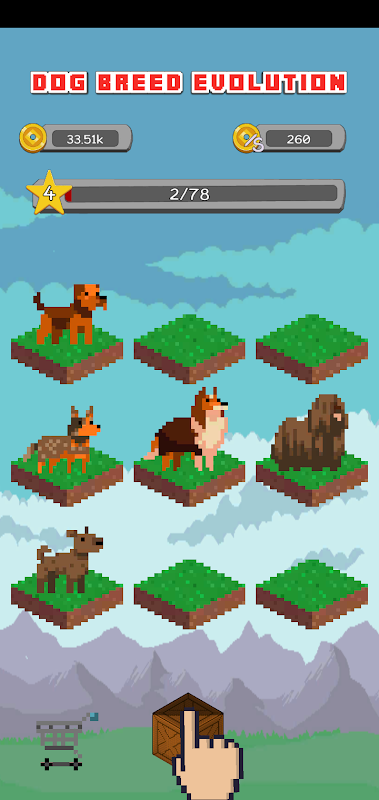 Use the shop to buy and collect any pure doggy that will woof and wag their tail with the rest of your animal friends. Develop faster by buying your retro and adorable puppies with cute tails.