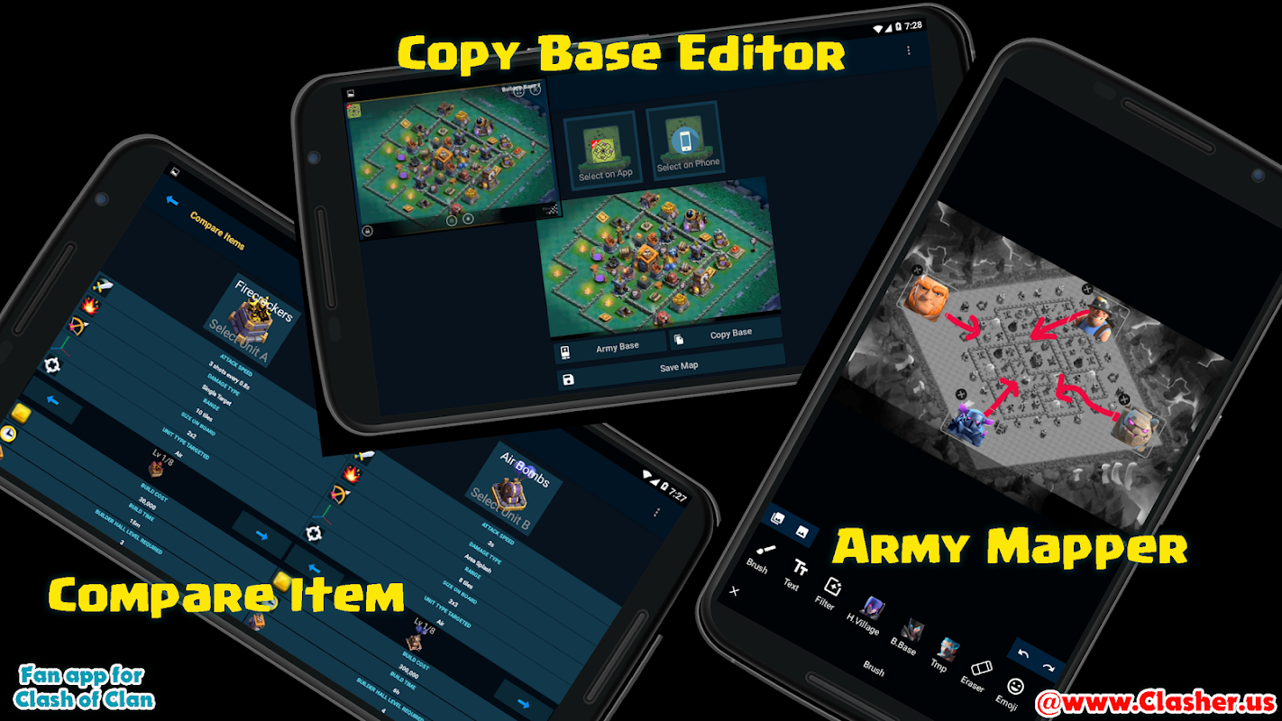 ⚠️⚠️⚠️This is a FAN app for Clash of Clans. This applicationis not affiliated with, endorsed, sponsored, or specifically approved by Supercell. Supercell is not responsible for the operation or content of this application. Use of the trademarks and other intellectual property of Supercell is subject to Supercell’s Fan Kit Agreement and FAN CONTENT POLICY. For more information about Supercell, please visit their website at www.supercell.net.