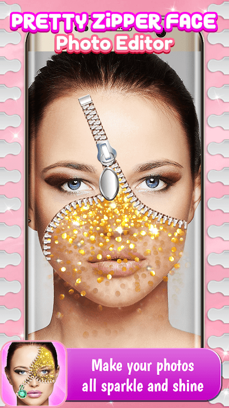 📸 Save your “pretty zipper face” in the gallery or share it with your friends on all social networks.