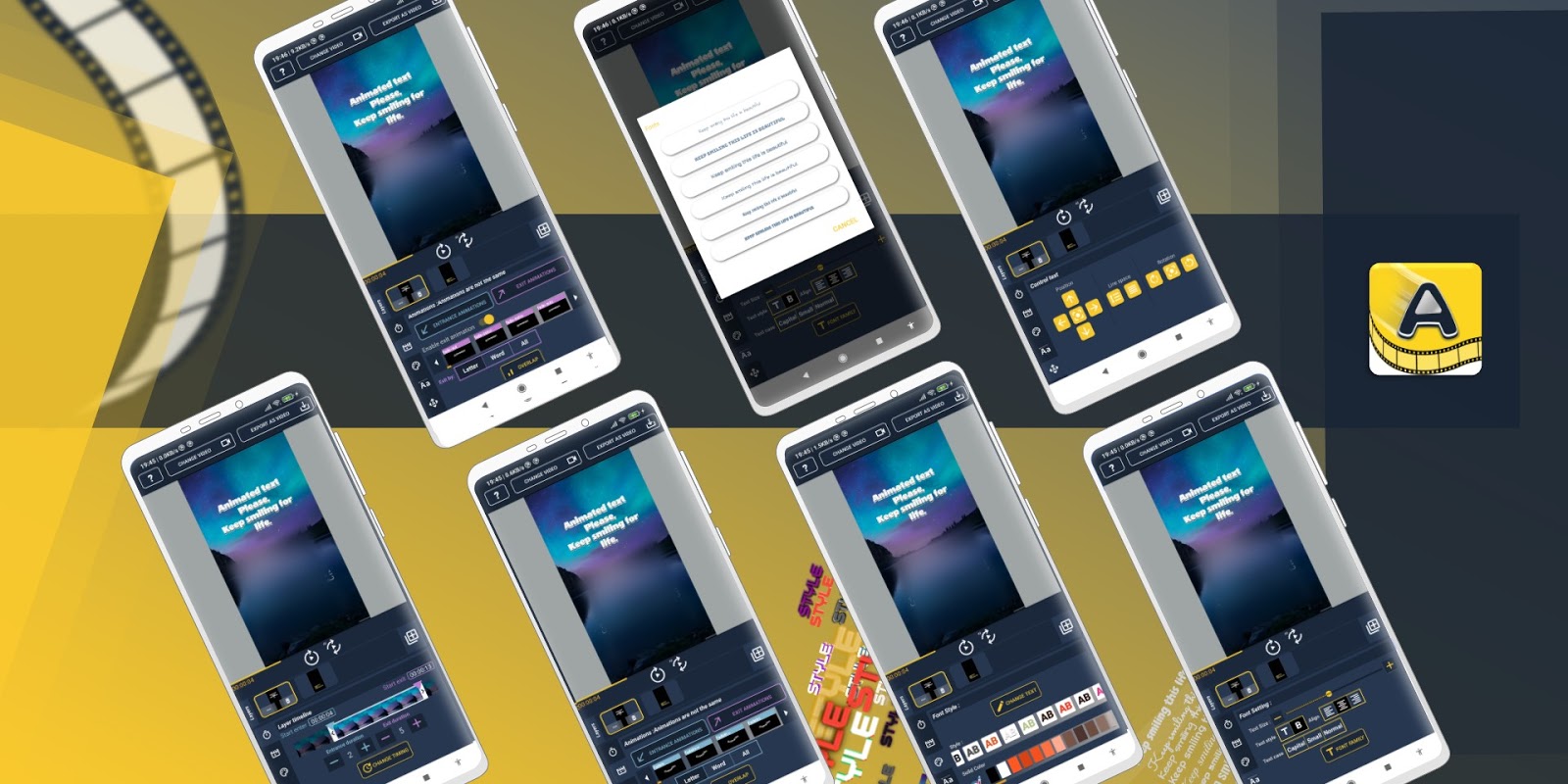 012 animated text allows you to add and customize your text animation effects on video with so many text styles and animations , you can add multi animated texts layers , change entrance and exit animation freely and easily the timing.