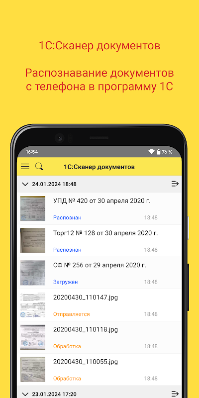 The mobile client of the service "1C: Recognition of Primary Documents" simplifies the entry of documents into the 1C program.